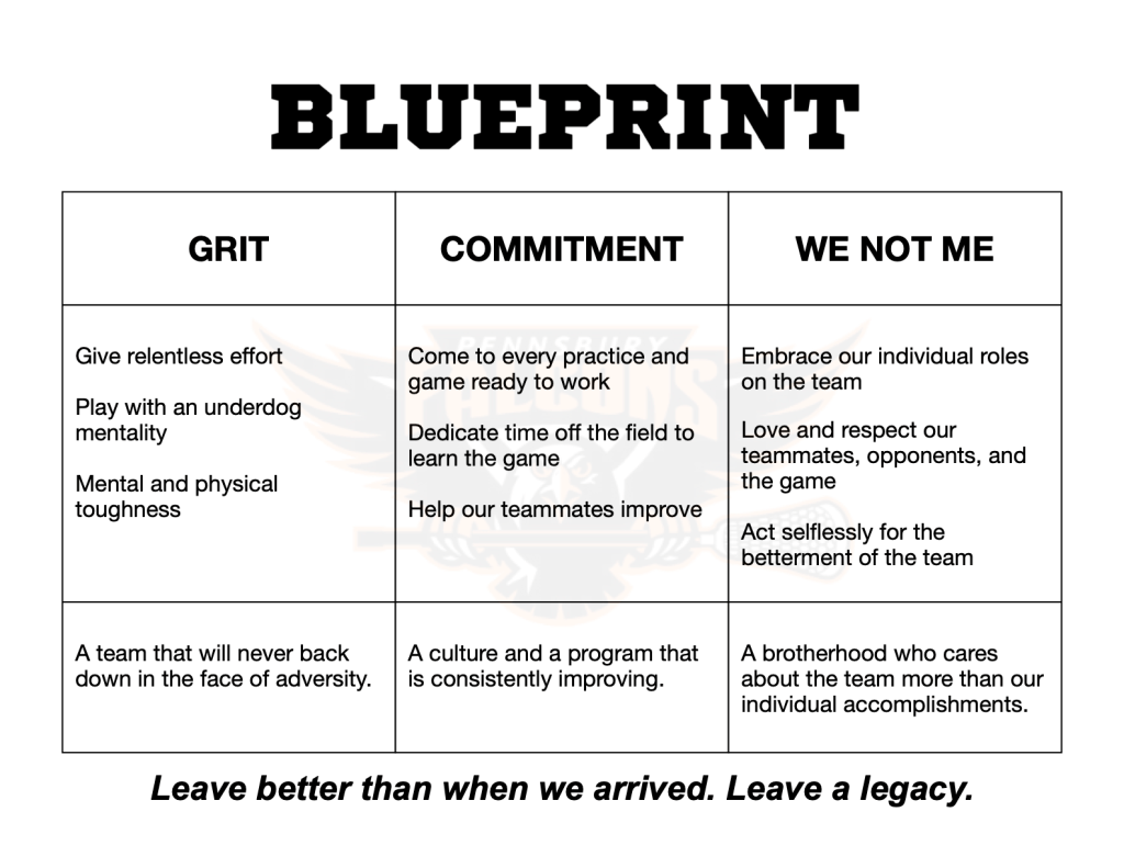 In the Spring of 2022 the team spent time to brainstorm and establish the Blueprint for PHS Boys Lacrosse. The players spent time individually and in small groups to establish this framework for the season and for future Falcons Lacrosse teams to build on.